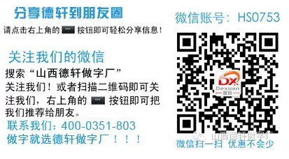 作者:山西德軒做字廠 來源:http://www.koalajoey.com 時間:2016-08-17 17:18:39 瀏覽次數(shù):